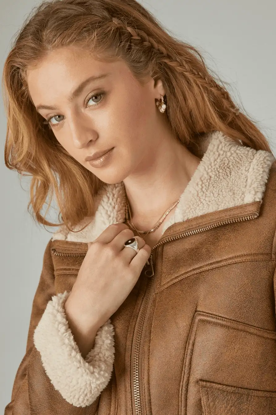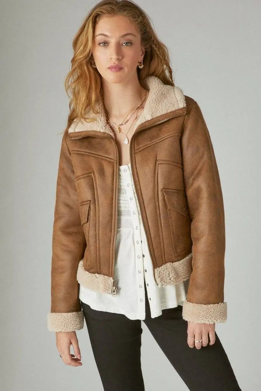 Constructed with reinforced stitching and high-quality faux suede, this jacket ensures long-lasting durability while maintaining its soft texture. The Sherpa Lining not only adds warmth but also enhances the jacket’s cozy feel, making it a practical and stylish choice for cooler weather.