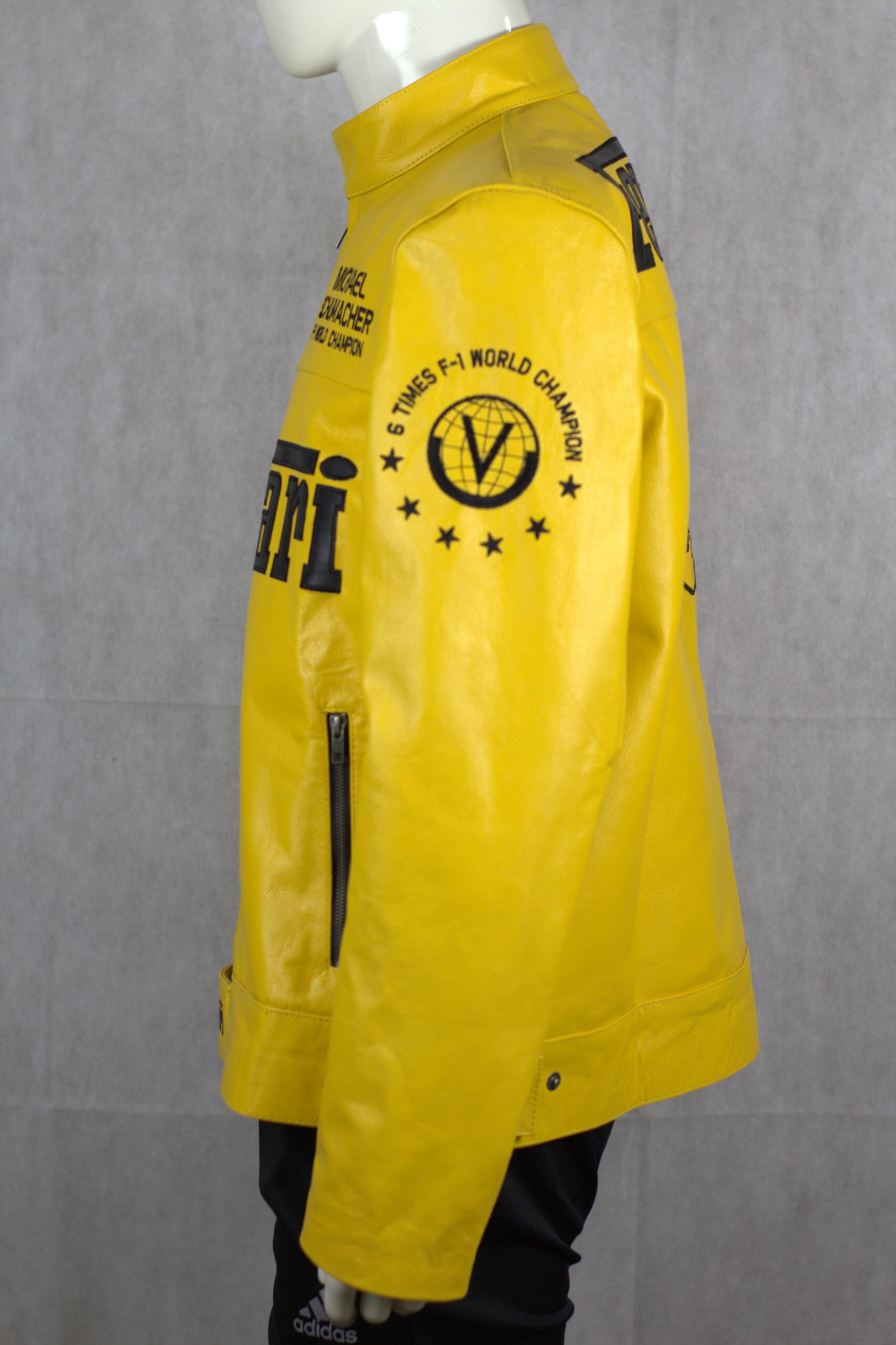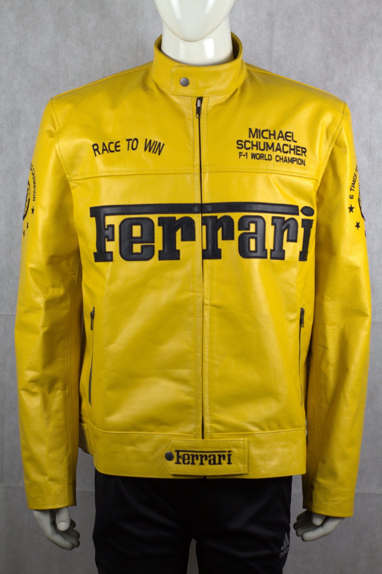 The Ferrari Yellow Leather Racing Jacket brings the thrill of the racetrack to your wardrobe. Designed with premium quality leather, this Ferrari Leather Racing Jacket perfectly embodies the speed and power of Ferrari. Its bright Ferrari yellow with bold black accents makes it a standout piece. Featuring the Ferrari racing logo, this jacket is a symbol of high-performance and racing heritage. Made from genuine leather, it offers durability and a sleek look. With a soft quilted interior for comfort, a stand-up collar, and adjustable zippered cuffs, this jacket is built for style and functionality. The slim, performance cut ensures it fits like a glove, making it perfect for any motorsport enthusiast.