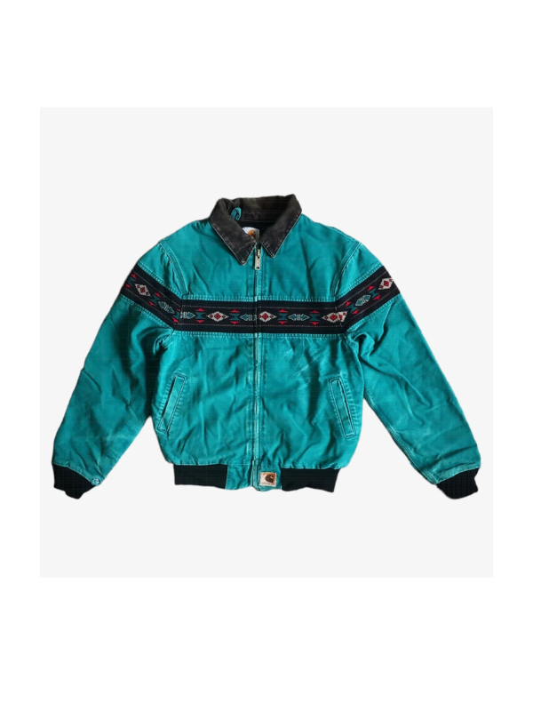 Vintage 90s Carhart Aztec Turquoise Blue Jacket