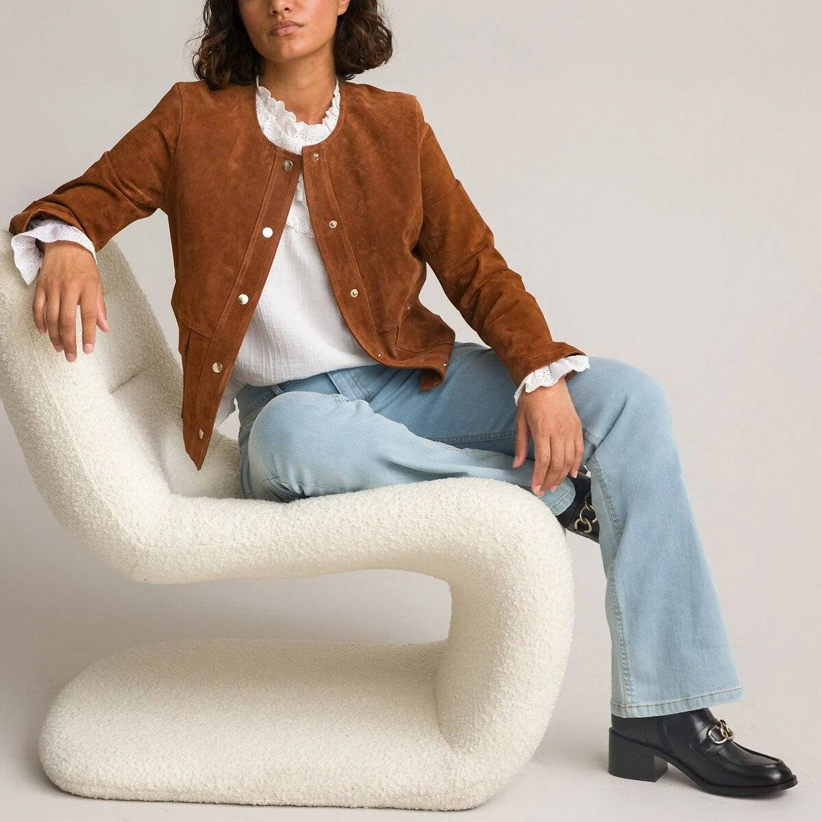 Made with reinforced stitching and high-quality suede, the jacket is built to last. The supple material ensures flexibility and comfort, while the structured silhouette maintains its shape over time, giving you both style and confidence.